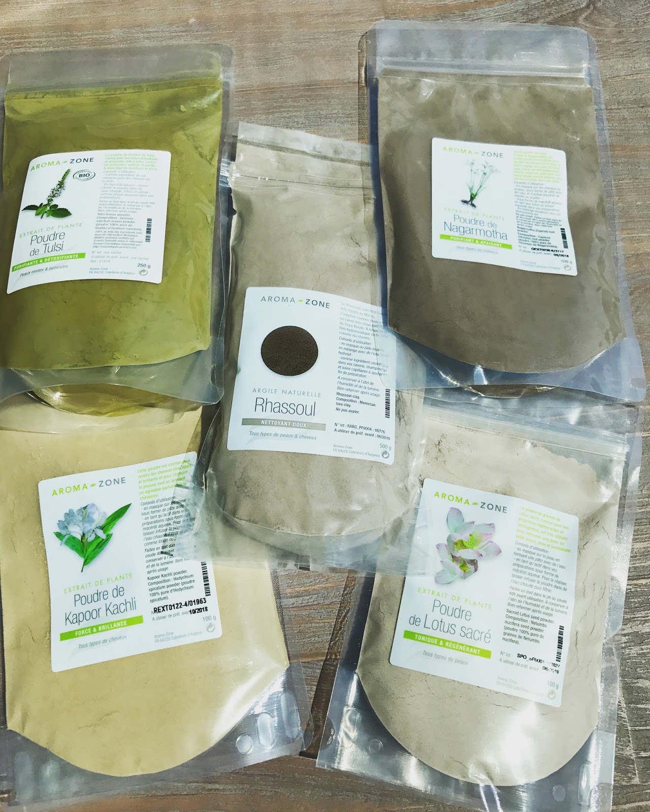 Last year I went to Paris for a few days and I came across the natural shop ‘Aroma zone’. This shop is really a paradise with all natural products. You can find there a lot of different natural hair herbs, oils, materials to make your own hair products and so much more! It was really a walhalla for a real no-shampoo fan like me! So you can maybe already gues that I walked out with a big bag full of natural hair products, including 4 bags of ayurvedic hair herbs that I didn’t know already.
