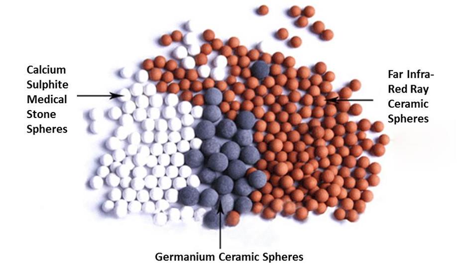 - De Germanium bolletjes zijn de grote bolletjes. Deze verzachten het water en stimuleren uw stofwisseling. Deze bolletjes verwijderen Chloor, ijzer, arsenicum, mercury, sediment, vuil en nog veel meer.